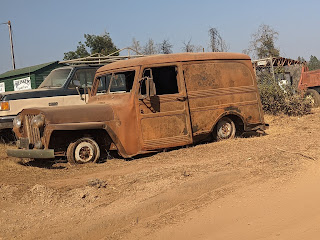 Paradise is located on a gently sloping plateau that rises out of the Sacramento Valley. It is surrounded to the east and west by steep canyons eroded from the plateau. After dinner our first night we drove a couple miles down Skyway to the overlook facing the canyon to the west. Smoke from the Dixie Fire kept the visibility low, but the view was amazing anyway.